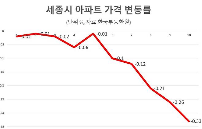 세종 아파트 1주일새 0.33% 하락.. 7년4개월 만에 최대 낙폭
