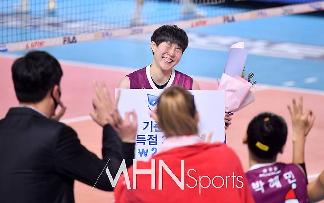 3000득점 달성 이소영, 팀원들의 귀여운 축하[포토]