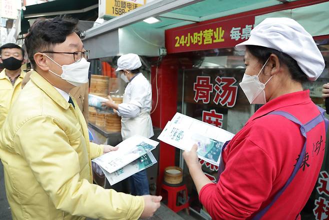 [서울=뉴시스] 권창회 기자 = 박범계 법무부장관이 9일 서울 영등포구 대림중앙시장을 방문해 코로나19 방역 계도활동을 하고 있다. (사진=법무부 제공) 2021.12.09. photo@newsis.com *재판매 및 DB 금지