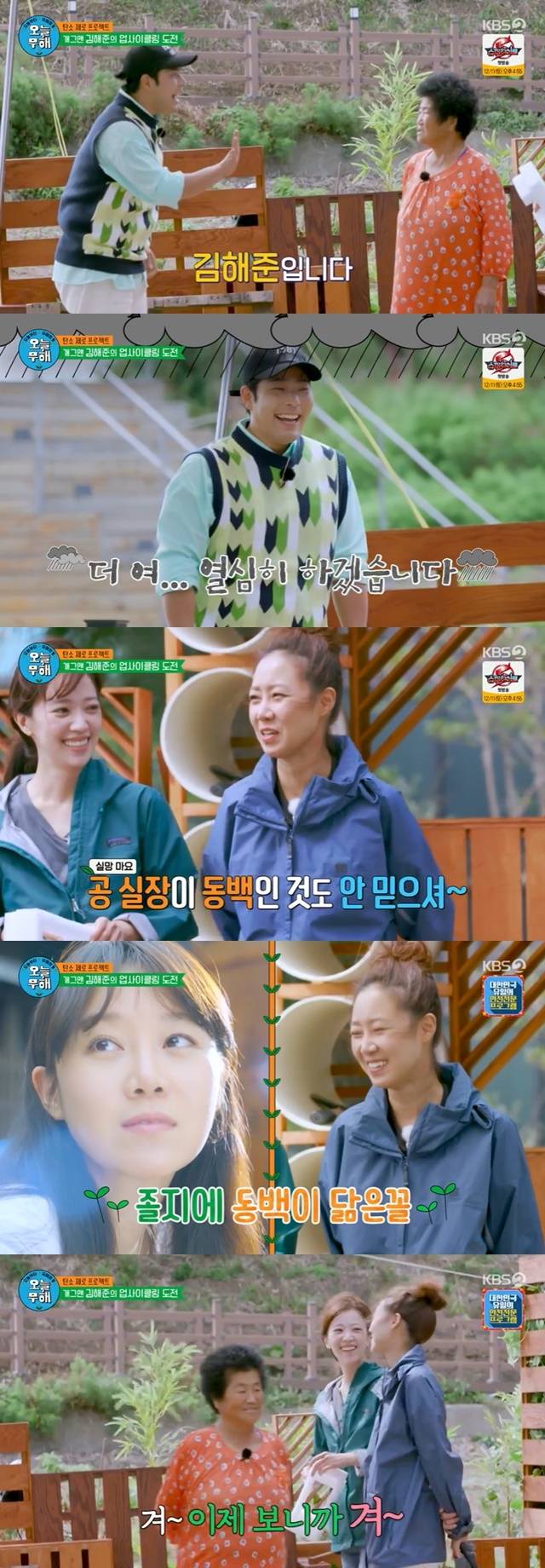 하지만 부녀 회장님은 “김해준이 누구냐”며 알아보지 못했고, 공효진은 “내가 동백이라고 해도 안 믿으신다”며 김해준을 위로했다. 이에 부녀회장님은 “섰는데 좀 닮았다. 이제 보니까 그려”라며 뒤늦게 공효진이 동백이라는 말을 믿었다. (사진=KBS 2TV ‘오늘부터 무해하게’ 캡처)