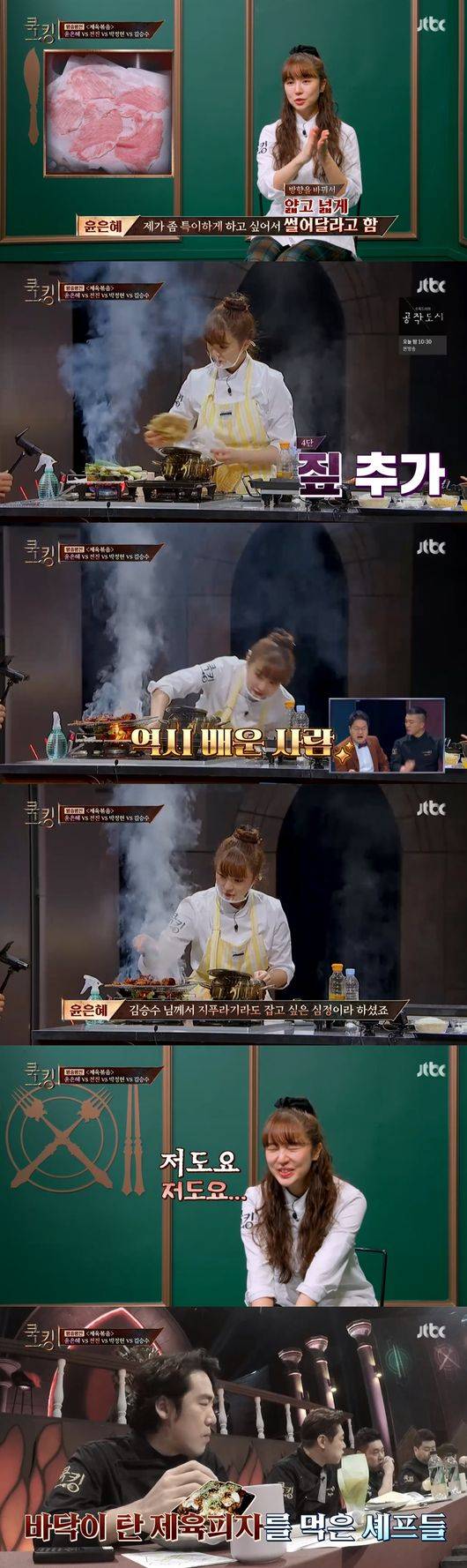 9일 방송된 JTBC '쿡킹 : 요리왕의 탄생'에서는 김승수, 전진, 윤은혜, 박정현이 '쿡킹' 최종 타이틀을 걸고 대결을 펼친 가운데 윤은혜가 예상치 못했던 난항을 겪었다.