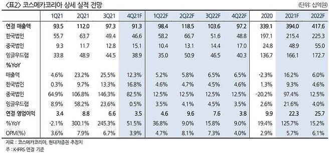 현대차證 "코스메카코리아, 중국 법인 내년 실적 개선 기대"