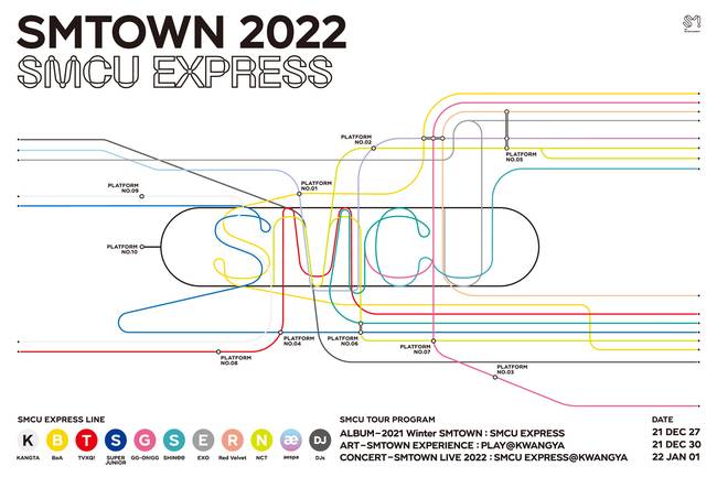 10일 SMTOWN 공식 SNS 계정을 통해 공개된 ‘SMTOWN 2022 : SMCU EXPRESS’ 콘셉트 포스터에는 공연, 앨범, 전시를 모두 만날 수 있는 특별한 프로젝트의 시작을 알리는 아티스트 라인업이 담겨 있어 이목을 사로잡았다.