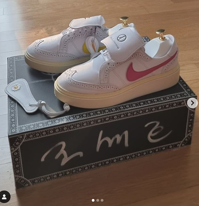 가수 지드래곤이 운영하는 패션브랜드 피스마이너스원과 나이키가 공동제작한 한정판 스니커즈를 선물받은 정우성이 인증샷을 남겨 부러움을 샀다.