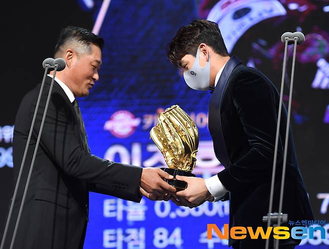 이날 키움 이정후가 외야수 부문 골든글러브를 수상했다.