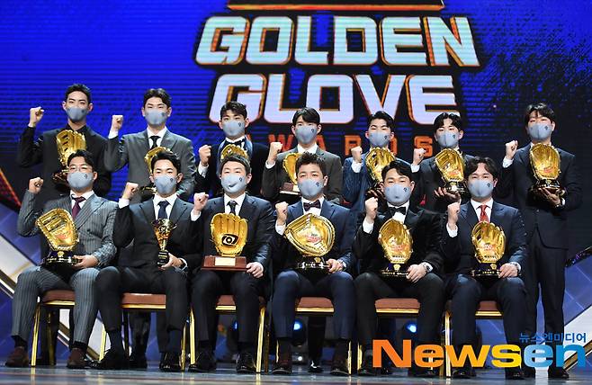 한편 KT 고영표는 페어플레이상을 수상했고 SSG 추신수는 사랑의 골든글러브상을 받았다. KT 위즈의 통합 우승을 이끈 베테랑 유한준과 박경수는 골든 포토상을 공동 수상했다.(사진=골든글러브 수상자들)