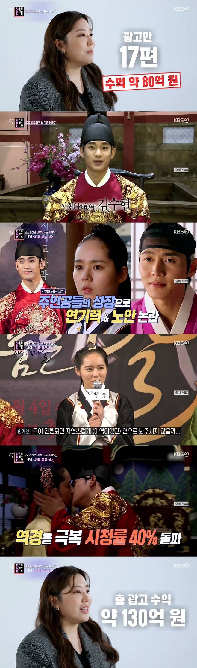 ‘해를 품은 달’은 시청률 40%를 넘으며 큰 인기를 거뒀으며, 한 회가 방영될 때마다 4억 3천만 원이라는 어마어마한 광고 수익을 냈으며, 모든 방송에 광고가 완판 되면서 총 광고 수익만 약 130억 원을 벌었다. (사진=KBS 2TV ‘연중라이브’ 방송 캡처)
