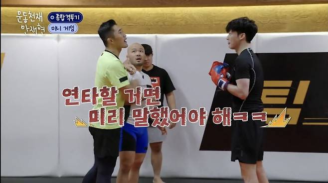 이어 김동현은 "룰이 달라서 상대에 따라 준비하는데 연타할지 안할지 말해줘야 해"라고 덧붙였고, 안재현은 "두 번 치고 한번 쉬겠다"고 밝혔다.
