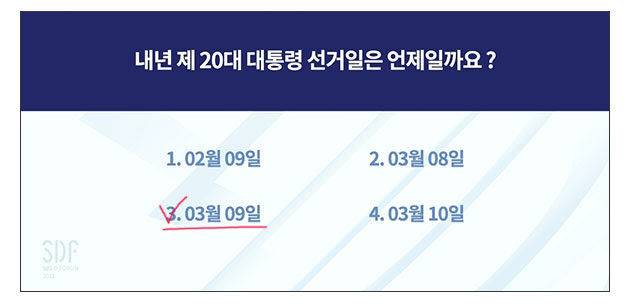 저희 올해 <SBS D포럼 2021> 이벤트 퀴즈 가운데 하나가 바로 올해 대선 날짜를 맞추는 것이었는데요.