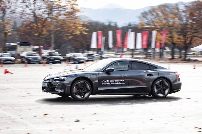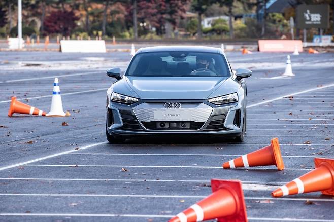 아직 국내에 출시되지 않은 e-트론 GT 콰트로와 RS e-트론 GT를 경기 과천 서울대공원 인근 주차장에서 시승해봤다. 아직 국내에는 공식 출시하지 않아 공도에 나갈 수가 없어 주차장에 설치된 간이 코스를 달렸다.