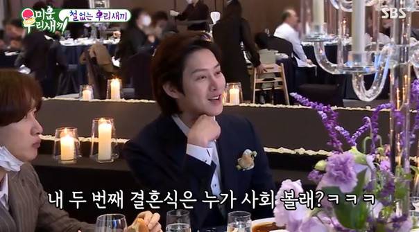 이후 멤버들이 모두 모여 대화를 나누게 되자 김희철은 "첫 번째 결혼식 사회는 최시원이 봤으면 좋겠다. 두 번째는 누가 볼래"라고 장난쳤고, 규현은 "나한테 초혼, 재혼 세트로 맡긴 분이 많다"고 너스레를 떨었다.