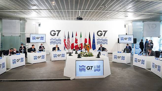 정의용, G7회의서 공급망 복원 강조..한미는 약식회동만