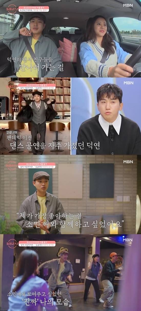 유소민과 데이트에 나선 이덕연은 함께 차를 타고 이동하며 "다들 좋으신 분들이다. 선생님만 서른 세 살, 서른 네 살 정도이고 다른 친구들은 나보다 동생들이다. 다들 아무래도 춤 추는 사람들이다 보니까…"라며 만나러 가는 사람들이 춤을 추는 사람들임을 알렸다.