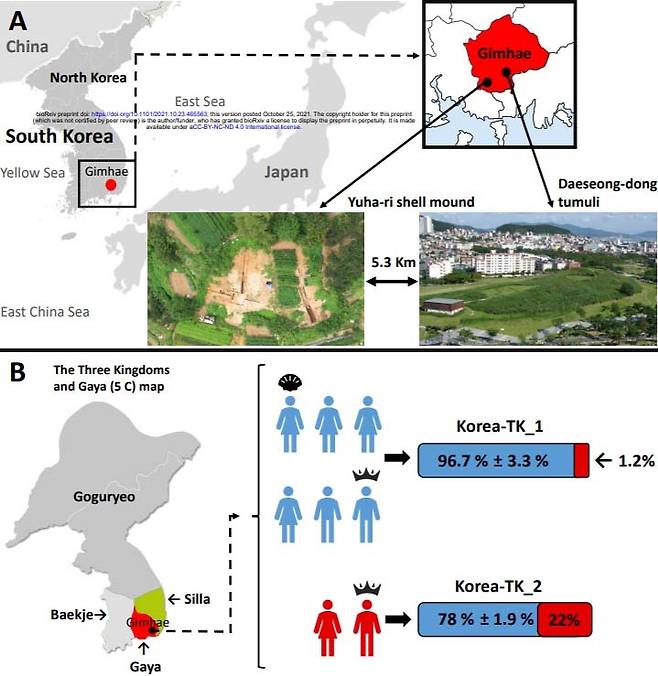 그 결과 연구진은 무덤에서 발굴된 가야인의 유전체가 2-3천여 년 전 중국 요하와 황하 지역에 형성되었던 청동기 시대의 인류 집단과 아주 가깝다는 것을 알아냈다. 이것은 이 지역의 청동기 문화가 한반도로 전파되는 과정에서 큰 규모의 인구 이주가 있었을 가능성을 암시한다.