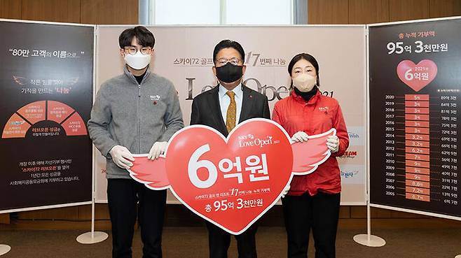 스카이72 골프 앤 리조트는 오늘(13일) 자선기금 전달 행사인 '스카이72 러브오픈'을 열고 6억 원의 성금을 인천사회복지공동모금회(회장 조상범)에 전달했습니다.