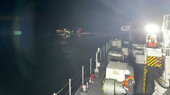 ▲ 충돌 사고 후 침몰한 어선 구조 작업