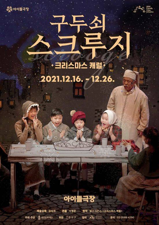 먼저 16일부터 26일까지 종로 아이들극장(성균관로 91)에서 영국의 대문호 찰스 디킨스의 ‘크리스마스 캐럴’ 원작을 재구성한 가족 음악극 '구두쇠 스크루지-크리스마스 캐럴-'을 선보인다.