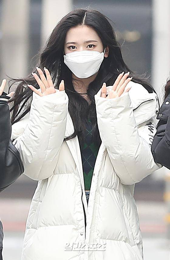 그룹 아이브가 15일 오전 서울 양천구 목동 SBS에서 진행되는 ‘김영철의 파워FM’ 사전 녹음에 참석하며 포즈를 취하고 있다.