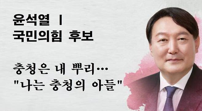 윤석열 후보는 '충청의 아들'을 자임하며 맞불을 놨습니다. 지난 8일 충청도민회 행사장을 찾아 "충청은 선대부터 500년 살아온 자신의 뿌리이자 고향"이라고 말했습니다. 윤 후보 아버지의 고향은 충청남도 공주입니다.