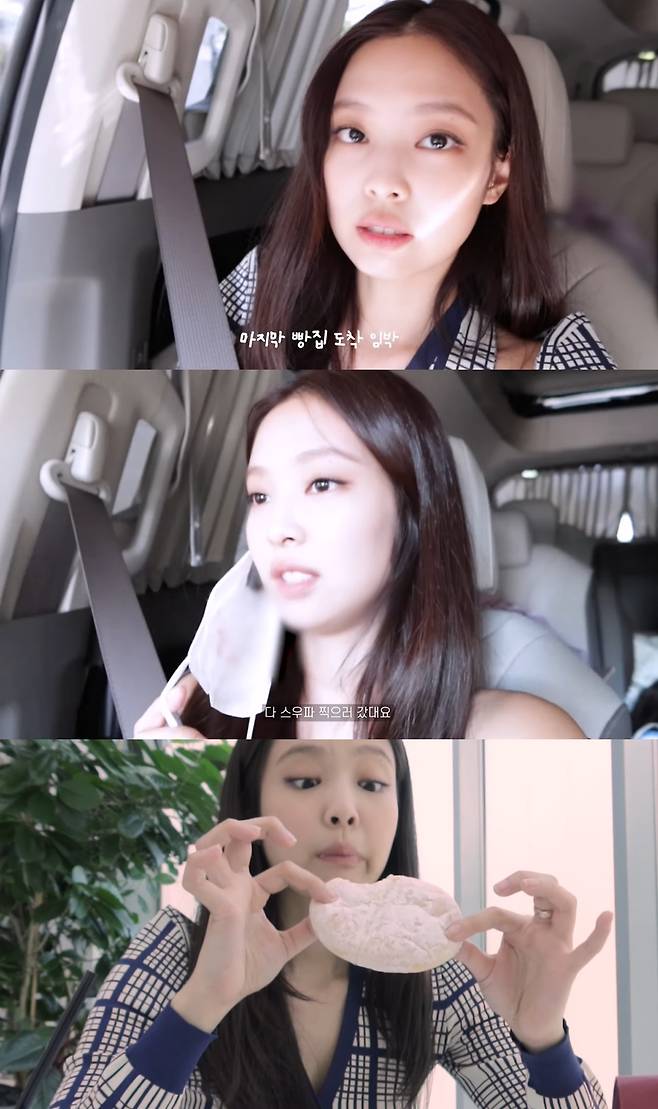 제니는 "지금 빵을 사서 걸어다니는데 굉장히 부끄럽다"면서도 빵이 들어있는 종이봉지를 소중히 안고 이동해 웃음을 줬다. 두 번째와 세 번째 빵집에서도 여러 종류의 빵을 고른 제니는 YG 신사옥으로 향했다.