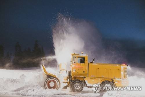 In this photo provided by Mammoth Mountain Ski Area, MMSA, a snow plower removes snow in Mammoth Mountain in Mammoth Lakes, Calif., early Wednesday, Dec. 15, 2021. Another storm is pushing into California as the state cleans up from a powerful weather system that coated mountains with much-needed snow and set rainfall records in the drought-stricken state. Wednesday's storm is expected to mostly impact Northern California. (Peter Morning/MMSA via AP) AP PROVIDES ACCESS TO THIS THIRD PARTY PHOTO SOLELY TO ILLUSTRATE NEWS REPORTING OR COMMENTARY ON FACTS DEPICTED IN IMAGE; MUST BE USED WITHIN 14 DAYS FROM TRANSMISSION; NO ARCHIVING; NO LICENSING; MANDATORY CREDIT