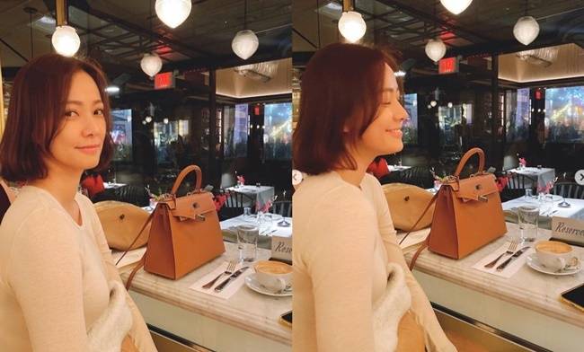 공개된 사진 속 손태영은 레스토랑에서 시간을 보내고 있다. 깔끔하게 단발로 자른 머리가 미모를 돋보이게 한다.