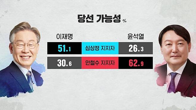 제3지대 지지층을 보면, 심상정 지지층은 이재명, 안철수 지지층은 윤석열 당선 가능성이 더 크다고 판단했습니다.