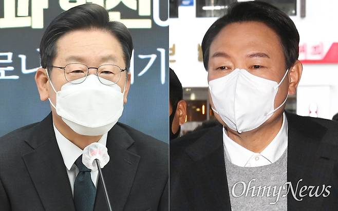 | ▲ 왼쪽부터 이재명 더불어민주당 대선후보, 윤석열 국민의힘 대선후보. |