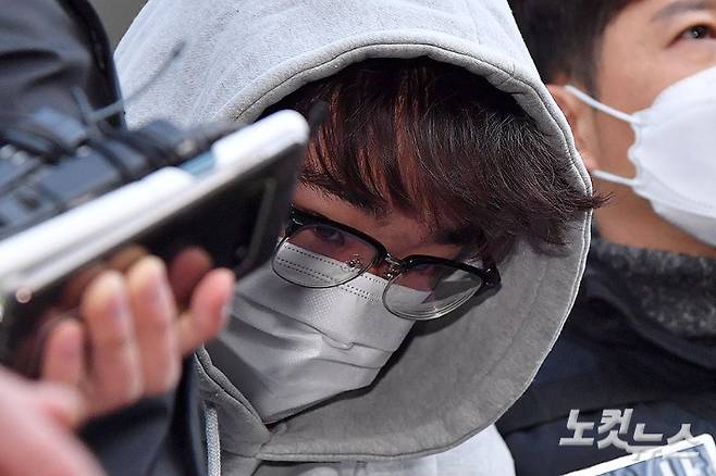 신변보호를 받던 여성의 가족을 살해한 혐의로 구속된 이석준(25)이 17일 서울 송파경찰서에서 검찰로 송치되고 있다. 이씨는 지난 10일 오후 2시 반쯤 서울 송파구에 있는 전 여자친구의 집에 침입해 여성의 어머니와 10대 남동생을 흉기로 여러 차례 찌르고 도주한 혐의를 받는다. 경찰은 두 사람을 병원으로 이송했으나 어머니는 끝내 숨졌다. 남동생은 위중한 상태인 것으로 알려졌다.박종민 기자