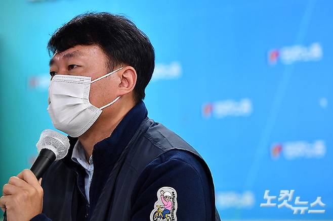 양경수 민주노총 위원장이 14일 서울 중구 민주노총 회의실에서 기자회견을 갖고 20대 대선요구안 관련 발언을 하고 있다. 양 위원장은 이날 내년 20대 대선을 '양극화 해소·불평등 타파'를 위한 선거로 규정하고, 내년 1월 진보진영에서 단일화할 대선 후보를 지지하겠다고 밝혔다. 박종민 기자