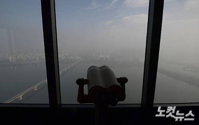 서울과 경기, 인천 등 수도권에 미세먼지 비상저감조치가 시행된 16일 서울 영등포구 63 스퀘어에서 바라본 하늘이 뿌옇게 보이고 있다. 이한형 기자