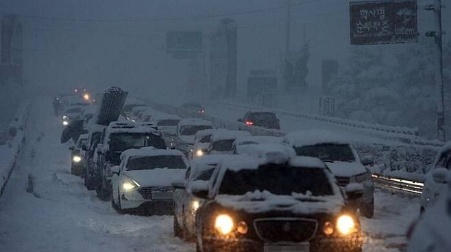 당국은 신고를 받고 제설 차량 2대를 현장으로 급파했지만, 정체 차량들에 막혀 움직이지 못했습니다.