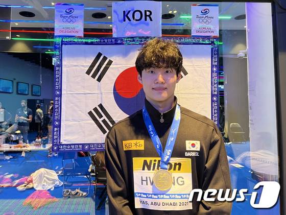 (서울=뉴스1) = 황선우가 17일(현지시간) 아랍에미리트(UAE) 아부다비에서 열린 제15회 국제수영연맹(FINA) 세계수영선수권대회 쇼트코스 남자 자유형 200m 결승에서 1분41초60의 기록으로 금메달을 차지했다.(대한수영연맹 제공) 2021.12.18/뉴스1
