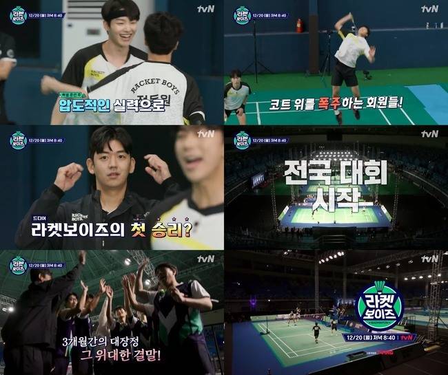 12월 20일 방송되는 tvN '라켓보이즈'에서는 라켓보이즈멤버들이 전국 대회 출전을 앞두고 마지막으로 벌인 용인 배드민턴 클럽 동호인들과의 대결 결과가 공개된다.