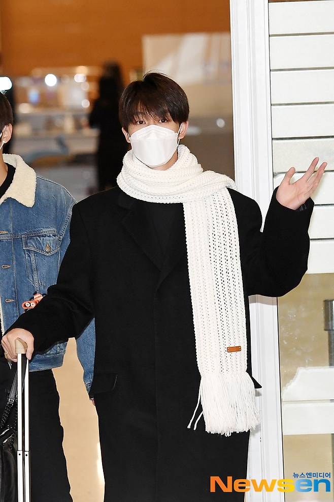 세븐틴(SEVENTEEN) 준(Jun)과 디에잇(THE 8)이 12월 20일 오후 인천 중구 운서동 인천국제공항 제2여객터미널을 통해 중국 샤먼에서 입국하고 있다.