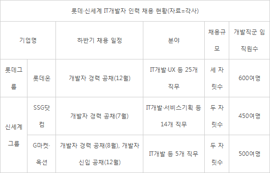 신세계그룹의 개발자 채용에 따라 온라인에서 점유율을 높이려는 롯데그룹과 인재 확보 경쟁에도 불이 붙었다.