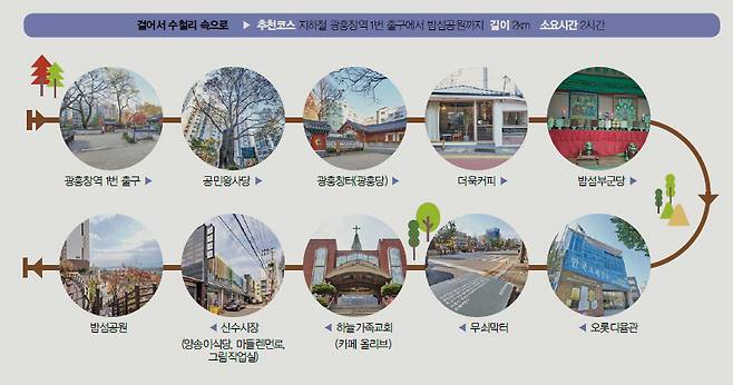 마포는 조선 시대 무쇠솥과 농기구를 제조하던 공장인 '무쇠막(무수막)'이 있던 곳이다. 단단한 쇠(철)는 모두 사라졌지만, 오히려 오래도록 남은 것은 이름이다. 지금의 마포구 신수동, 구수동이라는 지명에 더 뚜렷하게 각인되어 있다. 무수막의 한자가 수철리(水鐵里), 훗날 수철리의 구획이 나뉘면서 신수동(신수철리)과 구수동(구수철리)이 되었다는 것이다. 이제 수철리가 누구, 아니 어디인지 알았으니, 수철리 속으로 고고! 고려시대부터 현대사까지 버라이어티한 역사가 엮여 나온다.