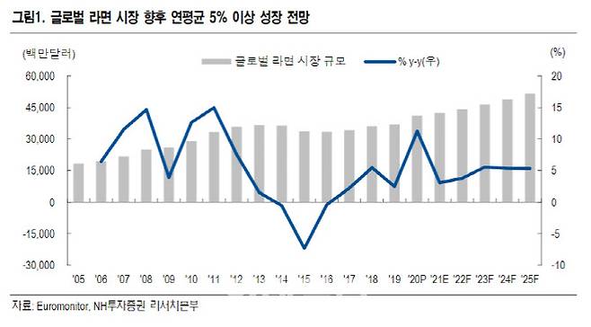 "내년 라면업체 실적 반전 성공..해외 모멘텀 재부각될 것"