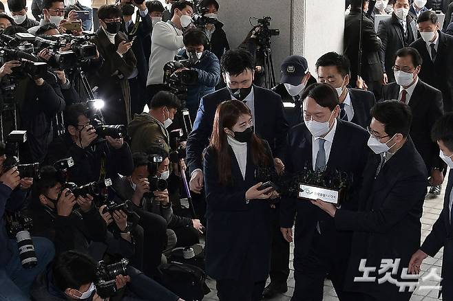 윤석열 검찰총장이 3월 4일 오후 서울 서초구 대검찰청 앞에서 사의를 표명을 하고 있다. 윤 총장은 취재진 앞에서 "이 나라를 지탱해온 헌법정신과 법치 시스템이 파괴되고 있습니다. 그 피해는 오로지 국민에게 돌아갈 것입니다"라고 말했다. 이한형 기자