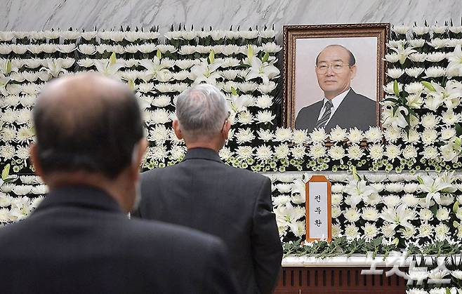 11월 23일 서울 서대문구 신촌세브란스병원 장례식장에 마련된 전직 대통령 전두환 씨 빈소에 조문객들의 발걸음이 이어지고 있다. 전씨의 장례는 5일장으로 치러지며 입관은 25일, 발인은 오는 27일 예정이다. 박종민 기자
