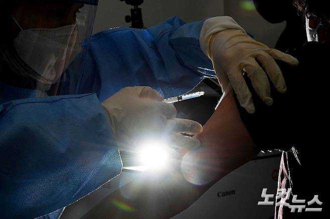 코로나19 백신 접종이 시작된 2월 26일 오전 서울 성동구보건소에서 노인요양시설 종사자들이 아스트라제네카 백신을 맞고 있다. 황진환 기자