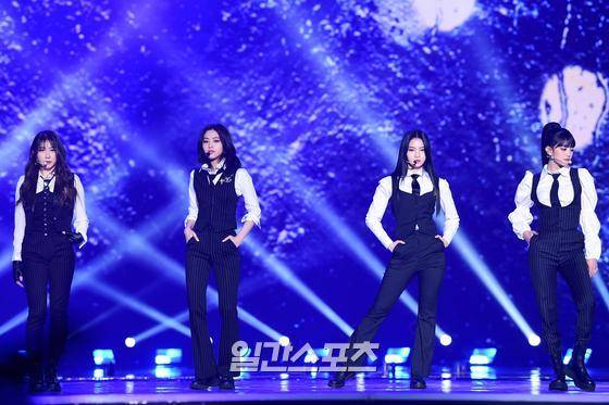 민니, 이채연, 류진, 아이사가 25일 오후 인천 남동 체육관에서 언택트로 열린 '2021 SBS 가요대전'에 참석해 멋진 무대를 펼치고 있다.