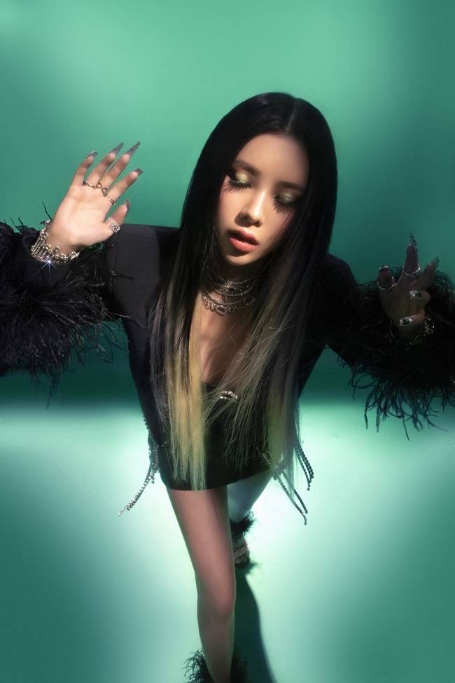 초록색 배경의 티저 속 문수진은 블링블링한 블랙 스타일링으로 유니크한 포즈를 취하고 있다. 문수진의 '눈동자'가 아직은 보이지 않아 궁금증을 자아낸다.