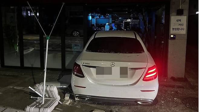 늦은 시간이라 인명피해는 없었지만 가게 전면 유리창이 부서지고 내부 기물이 파손됐습니다.