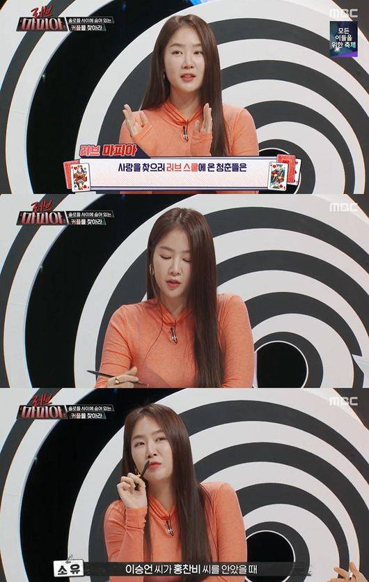 소유는 28일 방송된 MBC·seezn(시즌) 예능프로그램 '러브 마피아'에서 본격적인 추리 실력을 드러내며 방송에 재미를 더했다.