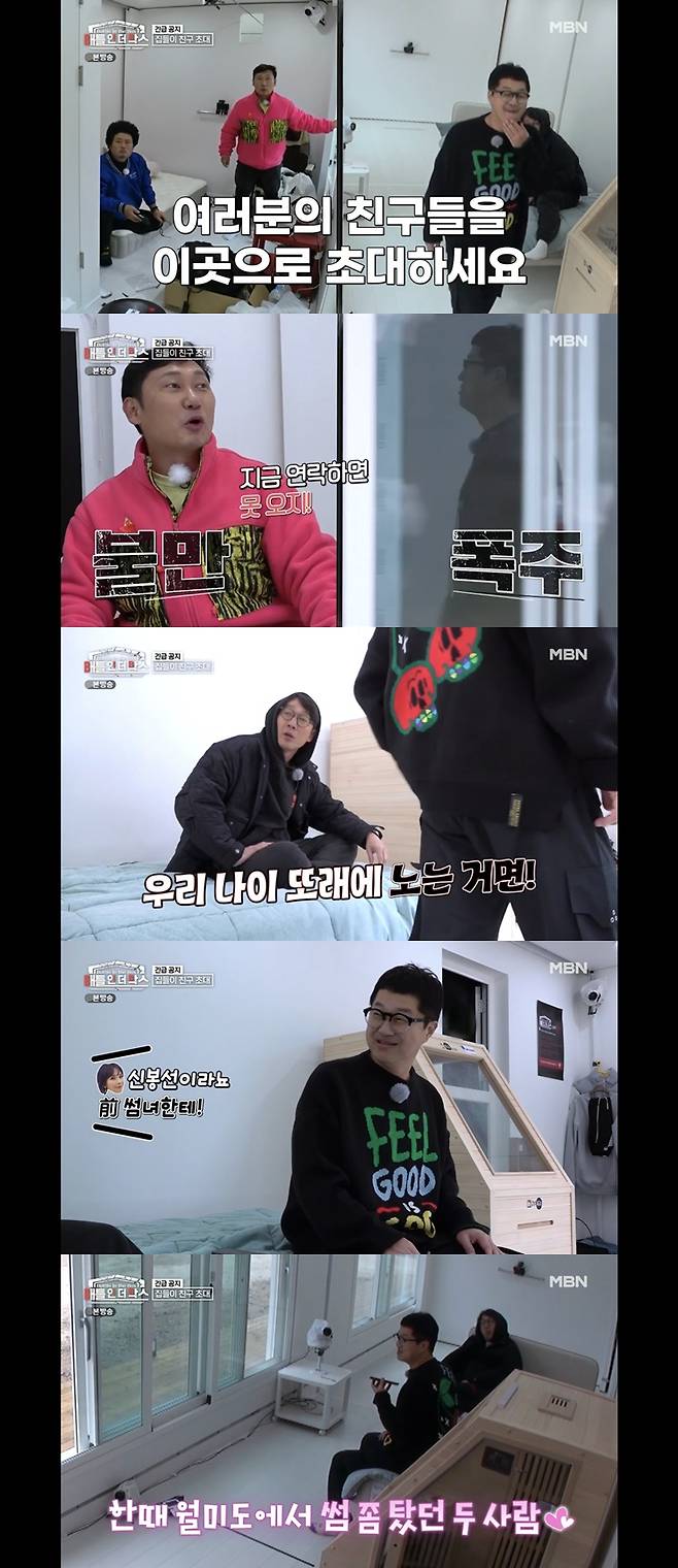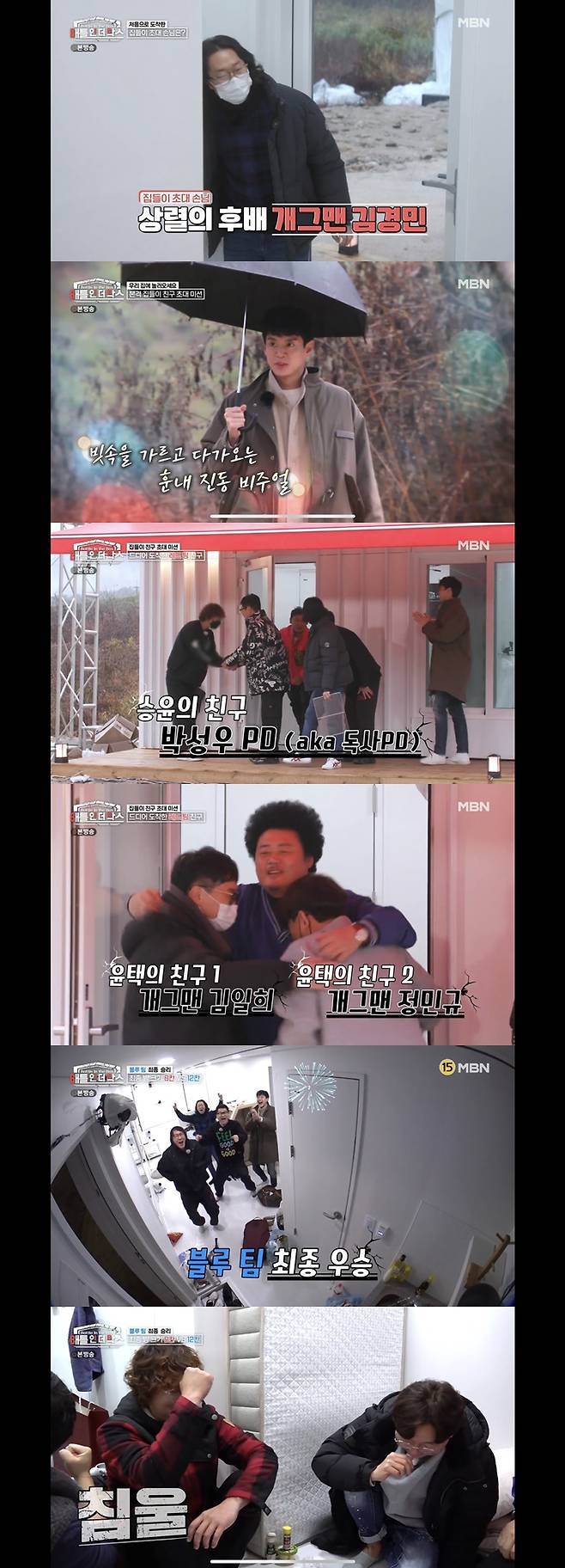 옆방에서 이들의 콧노래를 듣는 지상렬은 "방금 전까지 거지였는데 얼마나 좋겠냐"며 귀엽다는 듯 웃었다. 윤택은 "이제 전쟁이다"라며 의지를 보였고, 그렇게 하루가 끝났다.