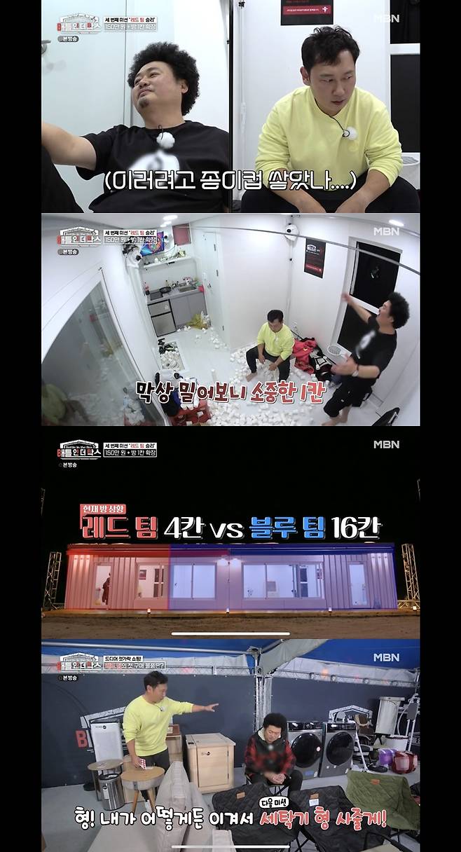 29일 방송된 MBN ‘배틀 인 더 박스’에서는 레드팀 윤택, 이승윤과 블루팀 이휘재, 지상렬이 방 칸을 두고 미션 대결하는 모습이 그려졌다. 또 네 사람은 촬영 장소인 강원도 원주로 친구들을 초대하라는 미션을 받았다.