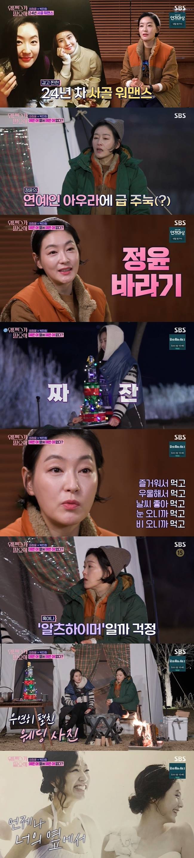 12월 30일 방송된 SBS ‘워맨스가 필요해’에서는 최정윤, 박진희의 캠핑과 오연수, 이경민, 윤유선, 차예련의 바자회 이야기가 공개 됐다.
