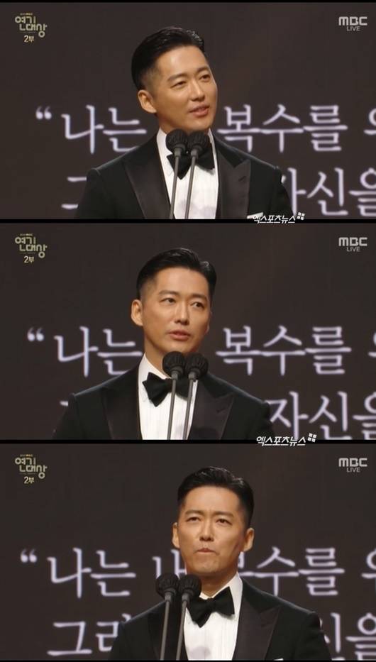 그는 "연말이 되면 상이 주는 기분이 묘하다. 오래 전 일인데 이곳 MBC 연기대상에 참여한 적 있었다. 참가한 것만으로도 기쁘고 행복했지만 다른 연기자분들을 열심히 축하해 드리고 집으로 돌아가서 잠자리에 혼자 누워 있을 때 뭔가 조금은 먹먹한 기분이 들더라. 그때 그 기분이 뭐였는지 잘 모르겠다. 그런데 오랜 시간이 흐른 후에 큰 상을 주셔서 진심으로 감사드리고 MBC 관계자분들에게 감사드린다"라며 소회를 밝혔다.