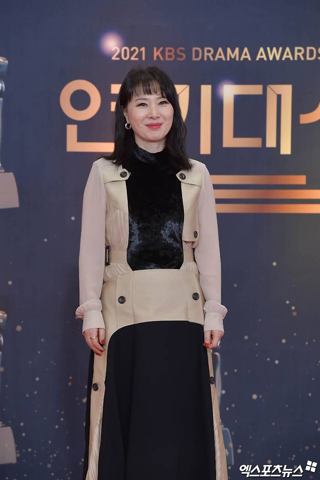 (엑스포츠뉴스 박지영 기자) 31일 오후 서울 여의도 KBS에서 열린 '2021 KBS 연기대상' 시상식에 참석한 배우 황영희가 레드카펫에서 포즈를 취하고 있다.